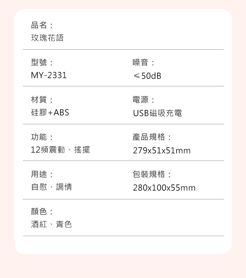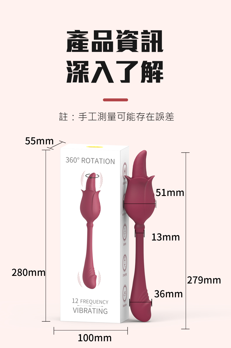 .規格:12段搖擺、12頻震動。