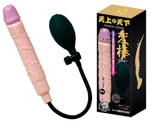 人気の天上天下シリーズから、エアー注入で太くたくましいディルドへと変貌を遂げる、その名も「天上天下 変棒」。通常の太さは3.0cmですが、付属のポンプでエアーを注入すれば、太さは3.5cmまで拡大!たかが5mmと侮るなかれ。体感すればその太さは一目瞭然!挿入してから内部で膨張させることにより、入り口からの圧迫を抑えて内部を直接刺激してくれます。エアー抜きも簡単ワンプッシュでOK!軟質素材により、肌を傷付けずリアルな肉棒の快感を楽しむことができます。大きさとともに膨れ上がる快感をご堪能ください