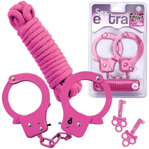 カラフルな手錠にロープが付いた拘束凌辱セット!